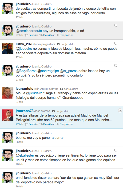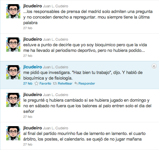 - Analizar si influye o no el fenómeno de las redes sociales -centrándome en el caso de Twitter,- y cómo influye en la crónica deportiva de autor. Este último punto será el objeto del trabajo de investigación que deberemos presentar el 13 de mayo.